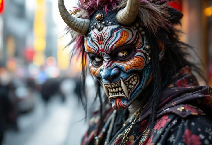 Dans la mythologie japonaise, les oni incarnent des démons puissants, parfois jugés maléfiques ou protecteurs selon les récits. Porter un masque japonais traditionnel lors d’événements populaires ou de festivals permettait autrefois de chasser les mauvais esprits ou de symboliser la force. Désormais, ce symbole du folklore japonais fait irruption sur les pavés colorés de Tokyo, en pleine effervescence du quartier Harajuku.